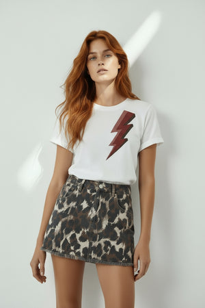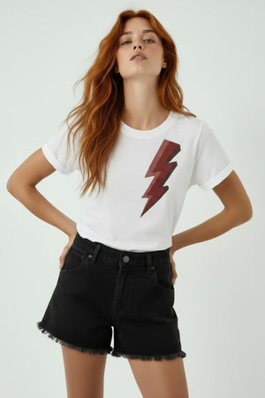 Esta icónica polera es uno de nuestros básicos; de manga corta y relaxed fit. En un tono crudo, es un básico combinable con todo, que aportará un toque entretenido y cool con su rayo con los colores de la temporada y un toque de glitter. Es perfecta para quienes busquen una polera ondera y versátil.