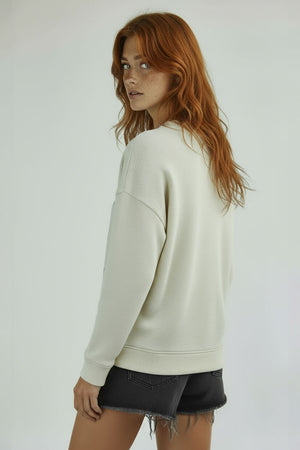 Polerón de cuello redondo con una gráfica de tigre estampado. De color nude, El TIGER FACE SWEATSHIRT es un essential que hace que cualquier look se vea ondero y veraniego.