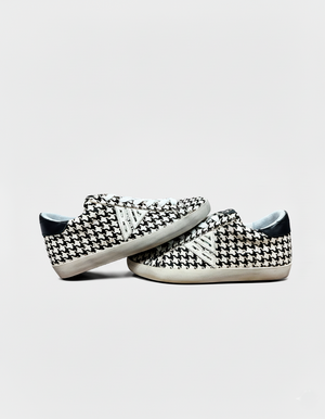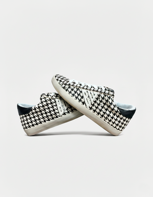 Esta zapatilla de caña baja en cuero combina líneas limpias y silueta atemporal con un giro sorprendente: forro exterior en tela Vichy, ese guiño retro que nunca pasa de moda. Un detalle inesperado que suma carácter y estilo desde lo sutil. Para quienes saben que lo auténtico está en los detalles.